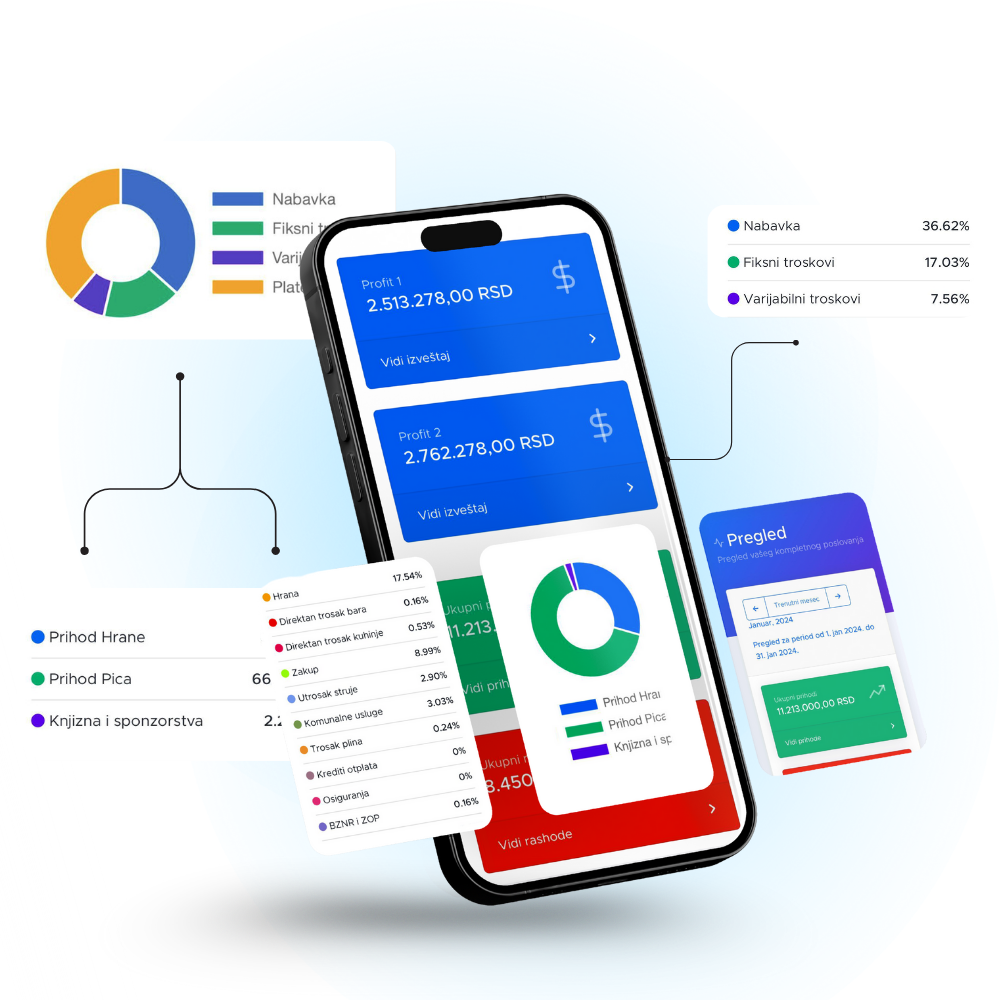 Da, ova aplikacija nije zamena za knjigovođu ili nekog od vaših zaposlenih, ovo je alat koji menadžerima i vlasnicima omogućava detaljnu analizu i praćenje prihodne i rashodne strane operative.