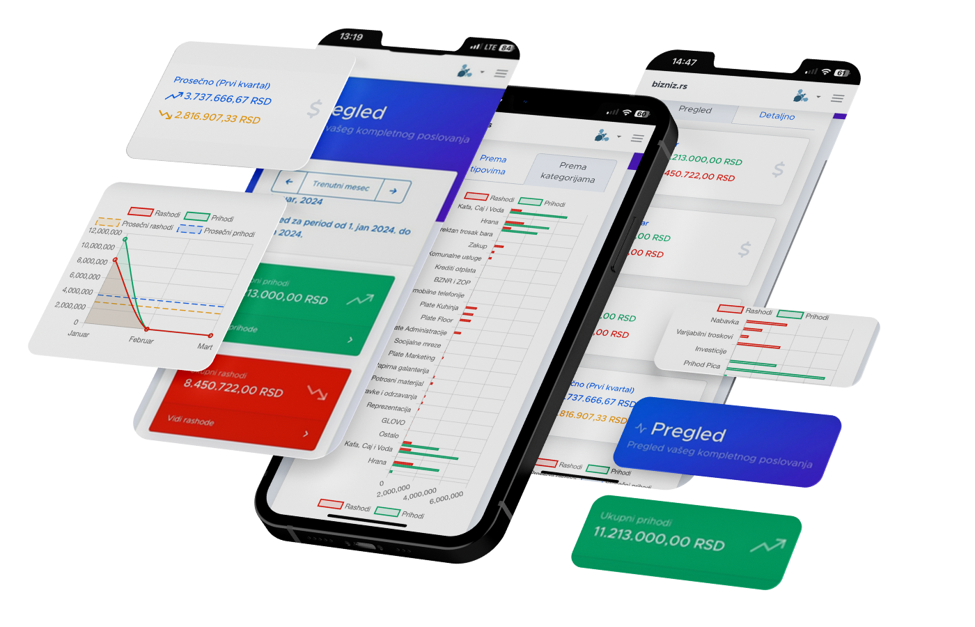 Aplikacija je napravljena da prati u reel time prihode i rashode, preko telefona imate uvid u to kako poslujete a podacima se bavite preko laptopa gde dog da ste.